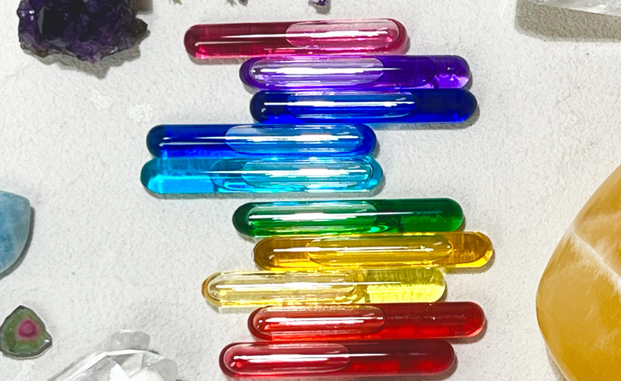 オーラカラーライトの施術は、ビーマーライトペン(Beamer Light Pen)を使用します。このペンは、オーラソーマのボトルカラーのエネルギーを光として放つ専用ツールです。